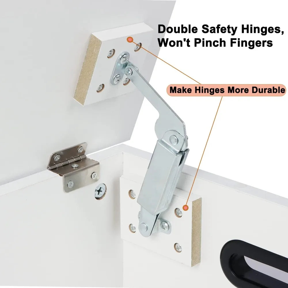 - Lift-top lid with two safety hinges lets you open slowly and stop at any position, preventing finger pinches and accidental closures.