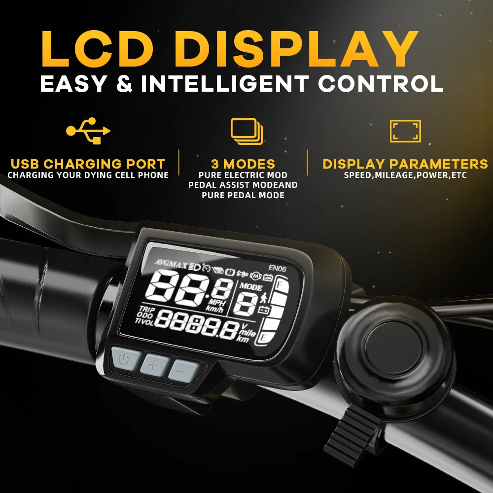 - Foldable for easy transport and storage, plus a 7-speed transmission, 3 riding modes, a smart LCD display, and 24/7 support with a 1-year warranty on motor, battery, and controller.