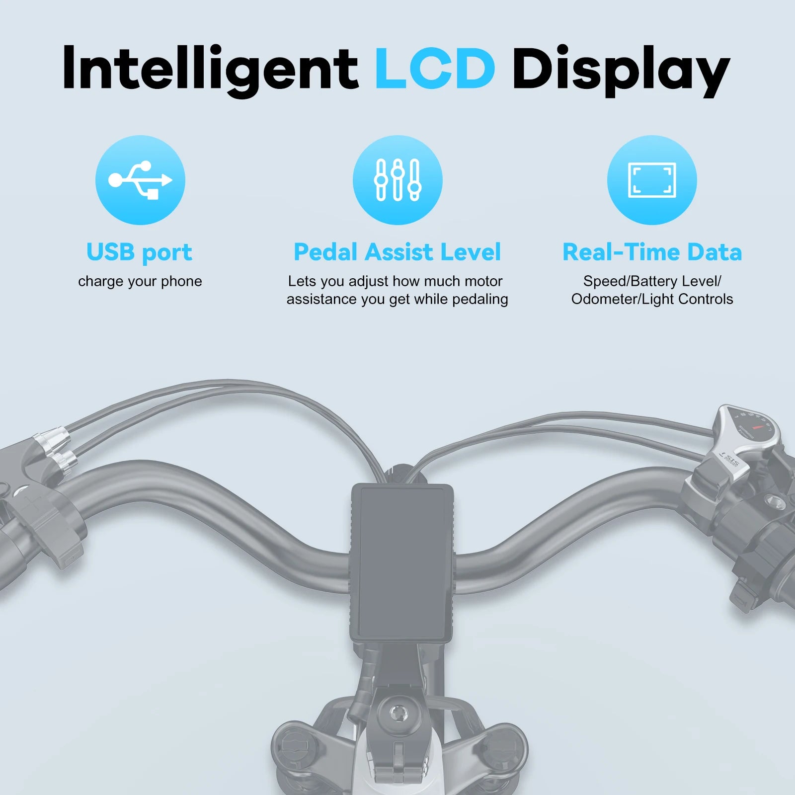 - Color LCD display shows 5 riding modes and 5 pedal-assist levels, so you can monitor speed and range, with easy cruise control for effortless cruising.
