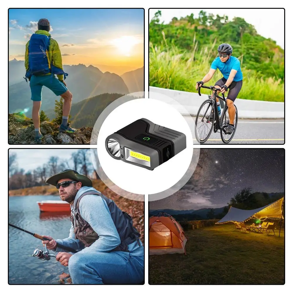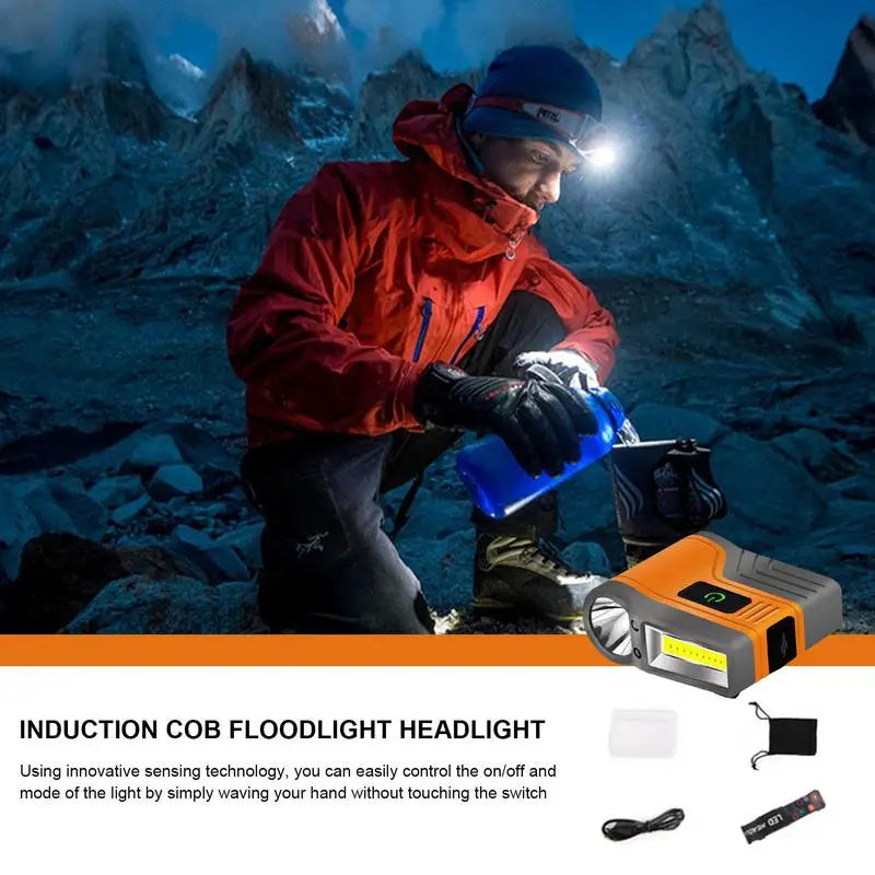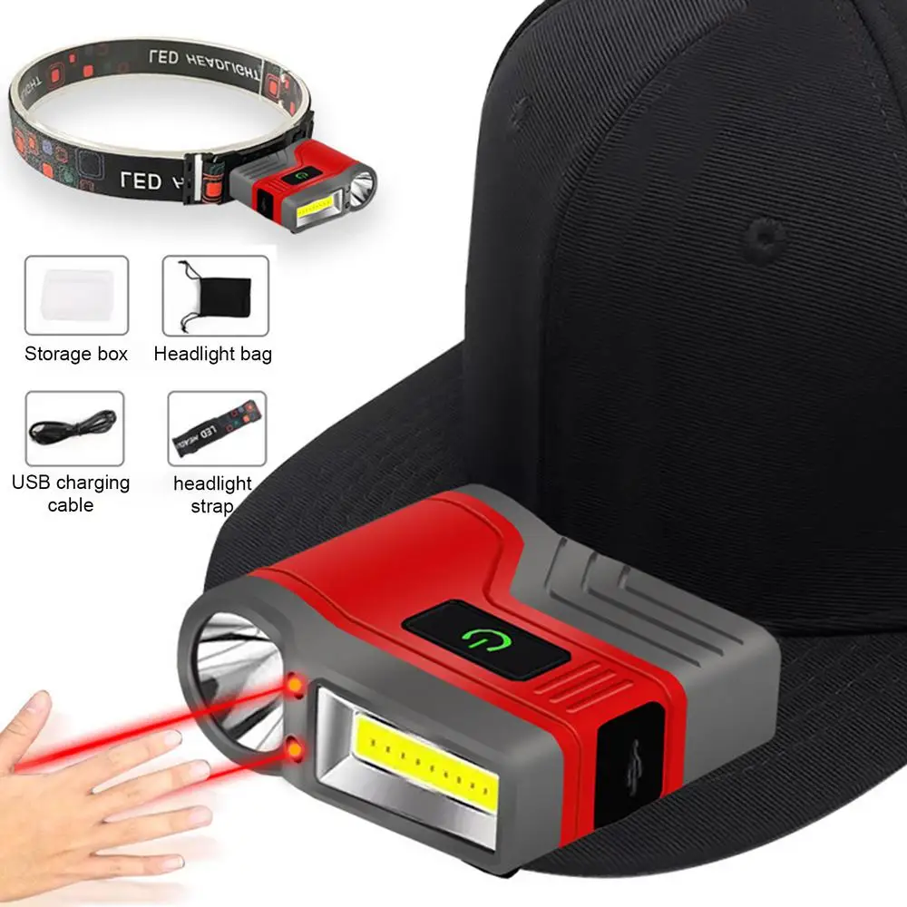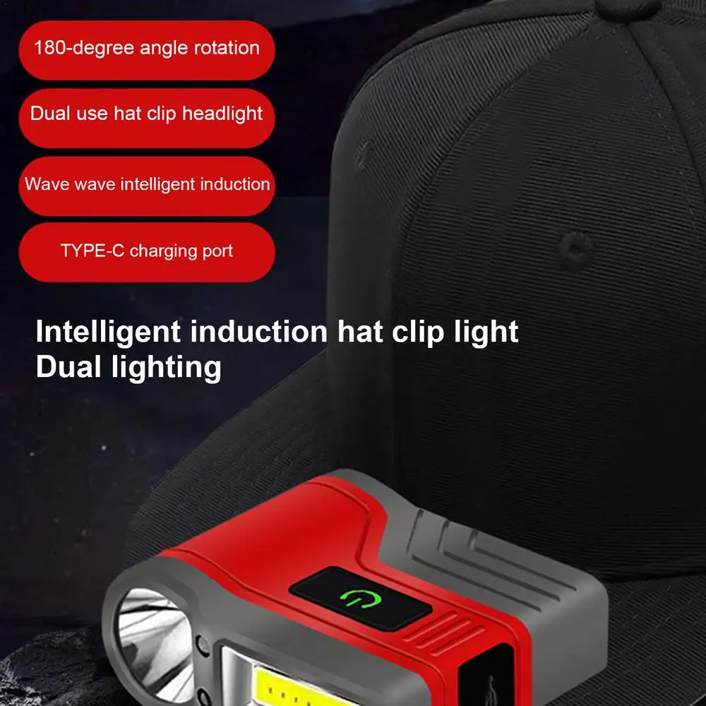 Induction COB Floodlight Head Torch Headlight Torch LED Hat Clip Lamp Flashlight with Long Battery Life for Night Riding