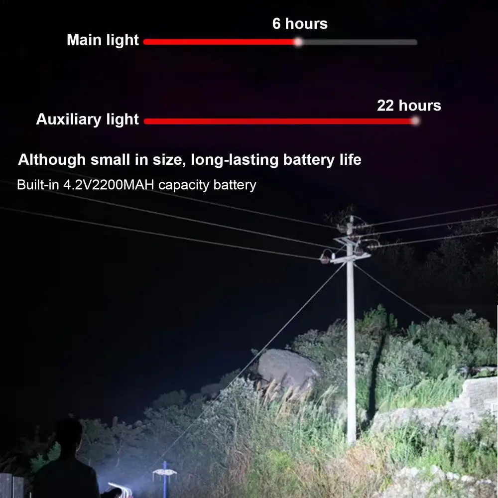 5.Rechargeable Performance: Equipped with a durable TYPE-C charging port, this head torch provides long-lasting visibility for your outdoor adventures. Its fast charging speed and life-grade waterproof construction make your experiences more convenient and hassle-free.