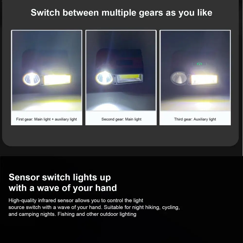 1.Effortless Operation: With intelligent sensor technology, the head torch can be easily controlled by hand gestures: no need to touch the . Perfect for hands-free outdoor activities.