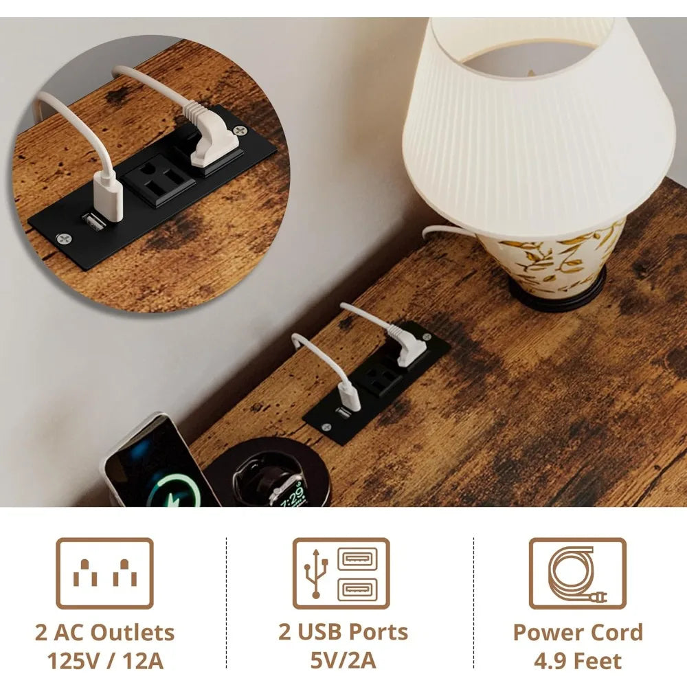 - Charging station & storage: The top panel houses a power strip with 2 USB ports and 2 AC outlets for devices; the flip-top drawer keeps toys and essentials organized.