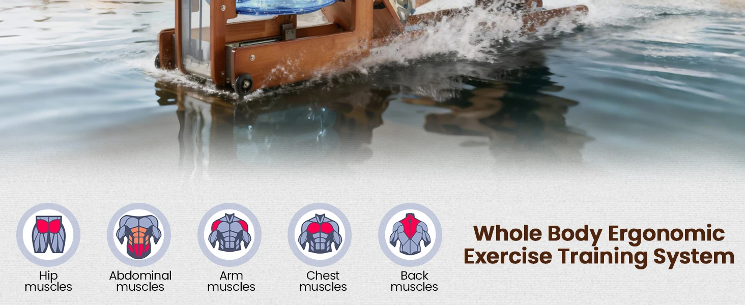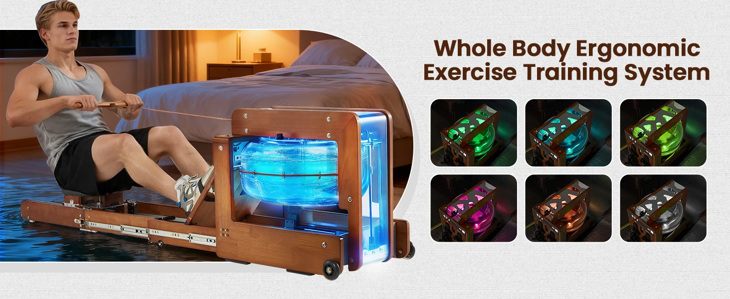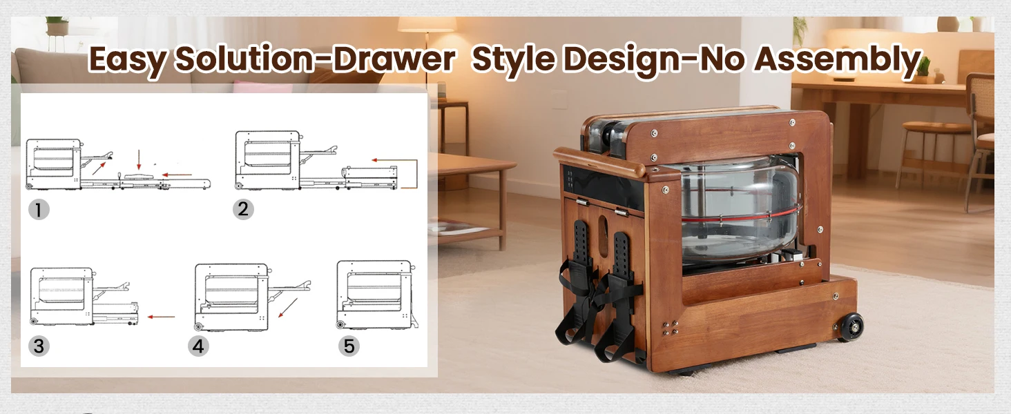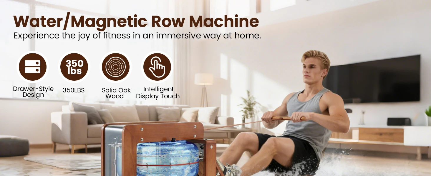 Water Rowing Machine for Home with Drawer-Style Folding Design Heavy Duty Water Fitness Oak Wood Immersive